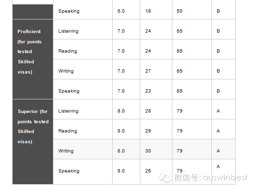 因为目前官方公布的所有签证类别的英语要求还只是以雅思成绩为准,官网还同时提供了雅思和上述英文考试的成绩对照表,方便申请者们参考。