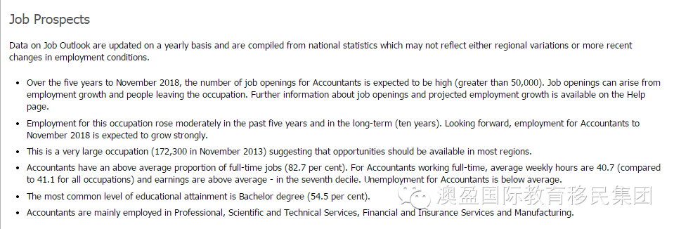 对于坊间一直流传的“会计专业被移除”的可能性,王老师认为是很小的。一直以来,会计专业都是留学生赴澳学习的热门专业,学习人数众多,也是各大学校宣传,推荐的招生热点。支持着会计专业成为热门的,正是澳大利亚就业市场对于会计类人才不断增长的需求。澳大利亚政府网站Job Outlook的统计显示,会计方向未来新增职位的预期为:高。