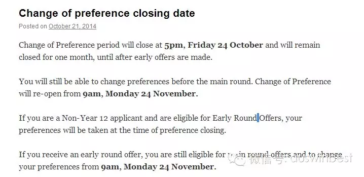 具体信息请查询VTAC 官网 https://vtacmedia.wordpress.com/2014/10/21/change-of-preference-closing-date/